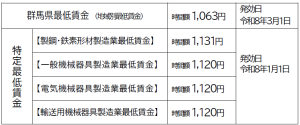 群馬県特定(産業別)最低賃金のお知らせ